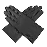 Luxury Lane Women's Cashmere Lined Embroidered Cuff Lambskin Leather Gloves - Black Large : Shorts Wool
